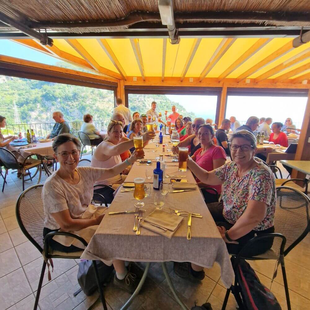 Our Walk About Italy tour of the Amalfi coast was simply one of the best holidays we’ve ever had! The locally produced fresh food was delicious, healthy and plentiful. Local wines and beer flowed, and nonalcoholic options were available. The views were stunning. Our guides were knowledgeable. The walks were well suited to people who were used to walking. Each person received the assistance and encouragement they needed. We are looking forward to another tour with Walk About Italy in the future.